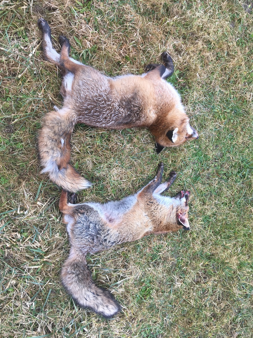Es ist 10:30 Uhr und beide Hunde haben die Prüfung mit Bravour bestanden. Wir haben noch Zeit also versuchen wir noch unser Glück an dem Rohr in Hailtingen wo „immer“ der Fuchs steckt. Doch dieses Mal ist keiner zu Hause. So ist die Jagd. Schlecht vorhersehbar, deshalb so spannend! Wir beschließen die Jagd zu beenden und ein Erinnerungsfoto zu schießen. Fabias Fuchs wird aus dem Kofferraum geholt. Ich staune nicht schlecht. So einen starken Rüden habe ich noch nie gesehen. Der alte Haudegen hat die Fangzähne schon ein Stück abgewetzt, die Prämolaren fehlen. Was für eine Leistung von der 8,3 kg leichten Fabia, einen so erfahrenen Fuchs zum Springen zu bewegen. Naja, ich vergesse gerne, dass Fabia auch kein Jungspund mehr ist.