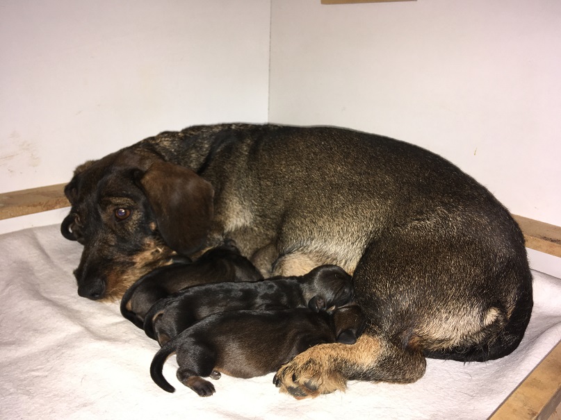 Vielleicht sollte ich nochmal auf eine Zuchtschau mit ihr gehnen, da sie inzwischen ihren Babyspeck verloren hat. Für mich hat sie für einen Jagddackel die richtige Größe, mit kuzer harscher Jacke und schönem Bart.