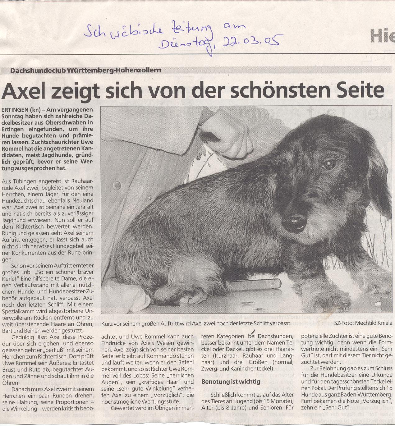 Axel wurde auf der auf der Landessiegerzuchtschau am 22.5.05 in Herrenberg