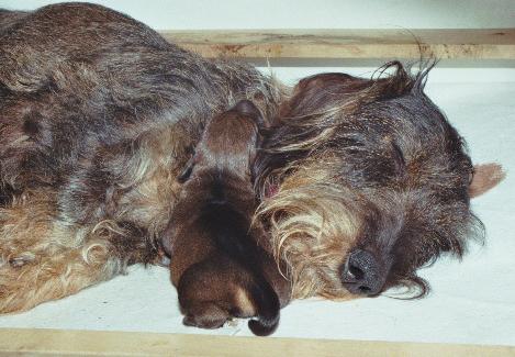 Dieser Vorgang kann bis zu 2 Std dauern. Der erste Welpe war dann ein Rüde mit
