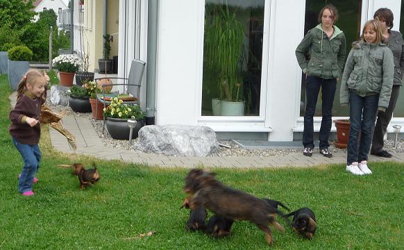 5.6.08 Die Ausbildung hat begonnen. Auf Pfiff sind alle Welpen